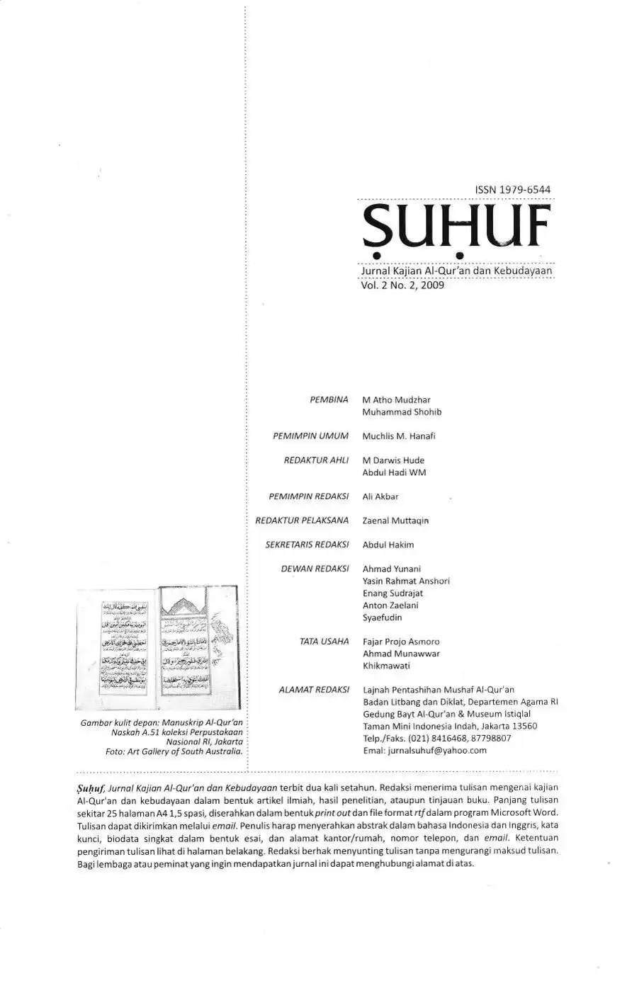 Suhuf Jurnal Kajian Al-Qur'an dan Kebudayaan. Vol. 2 - No. 1 - 2009