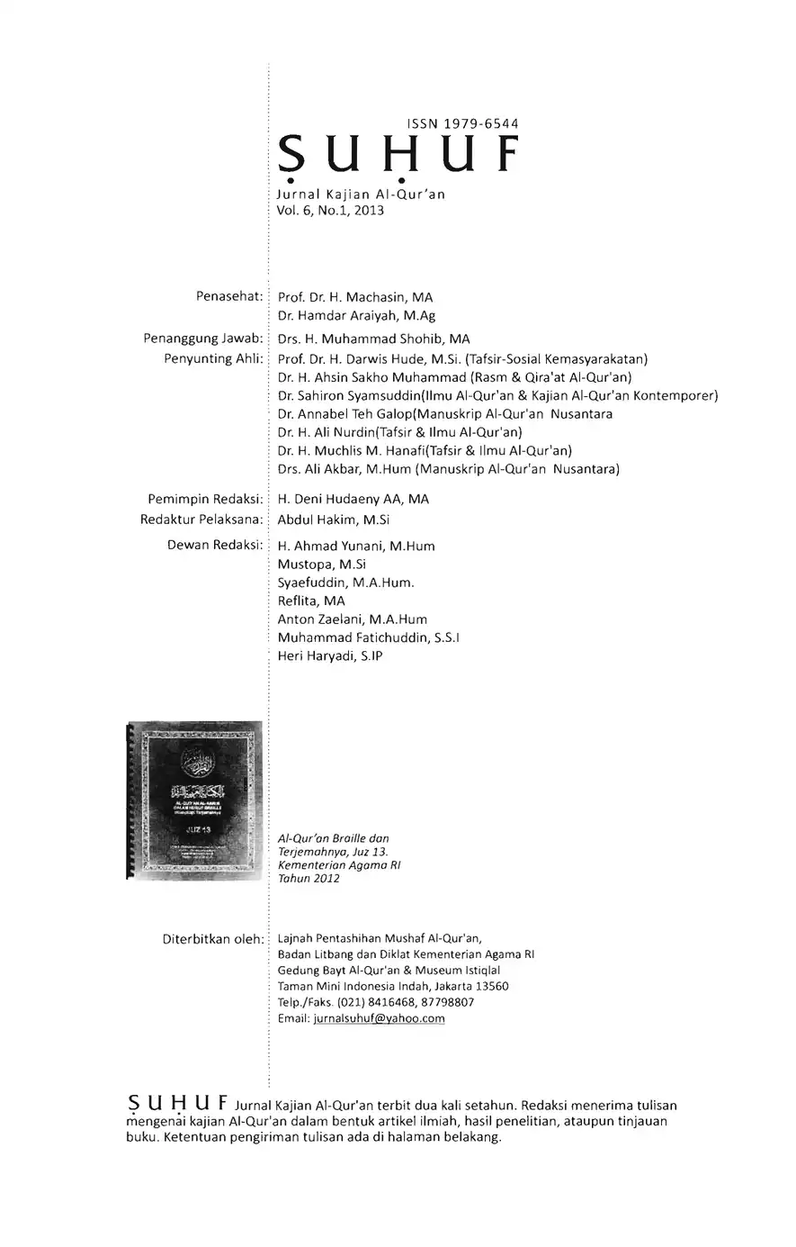 Suhuf Jurnal Kajian Al-Qur'an dan Kebudayaan. Vol. 6 - No. 1 - 2013